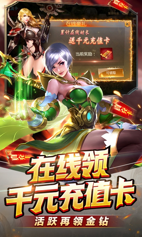 2.在线即可领取千元充值卡,每日活跃再领超级金钻,兑换稀有物品