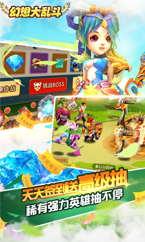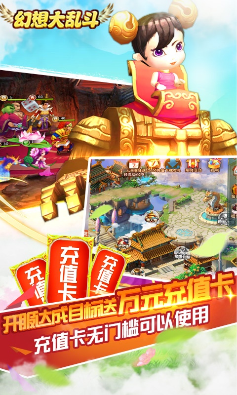 《幻想大乱斗(万充千万钻)》游戏拥有放置类的优秀特点,碎片化时间,轻松休闲。无论你身在何处都能体验到最畅快的游戏体验,以中国神话时代为背景,架空历史年代,乱斗世界。