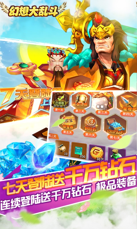 2.登录还送至强英雄二郎神、一千万钻石、橙色武器