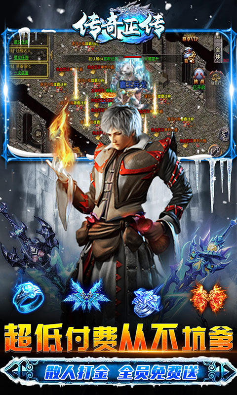 1:1还原经典端游,网吧通宵都要来玩的传奇手游。无团队,无暗坑,低消费,无隐藏,良心的手游!全新版本,新颖玩法,绚丽多彩,花最少的钱,体验最大的激情!主要玩法以升级、爆装、攻沙为核心,实现自由交易、一键回收等真实的传奇精彩玩法!喜欢冰雪复古玩法的玩家绝不能错过哦!