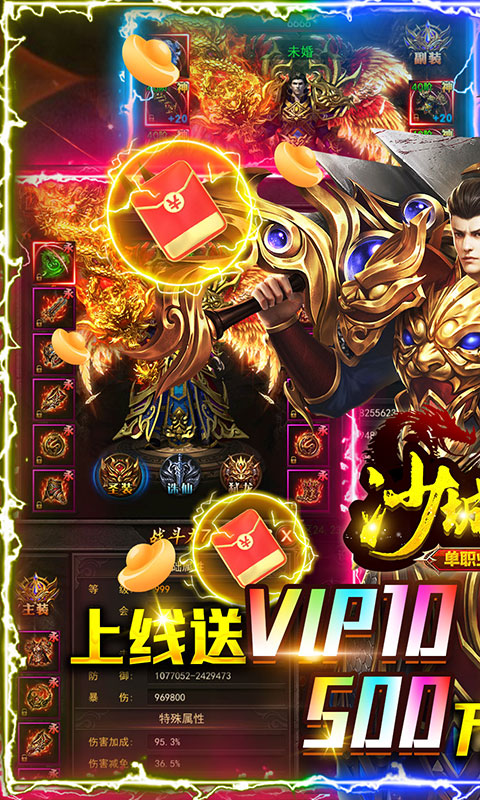 1.上线就送vip10、12888钻石、500万元宝、88888玛法币、限时时装,vip礼包免费领取