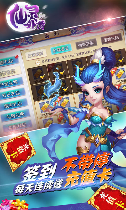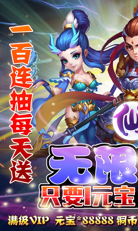 2、每日登录送充值卡、100连抽(免费抽仙兽);40级送500元充值券*1