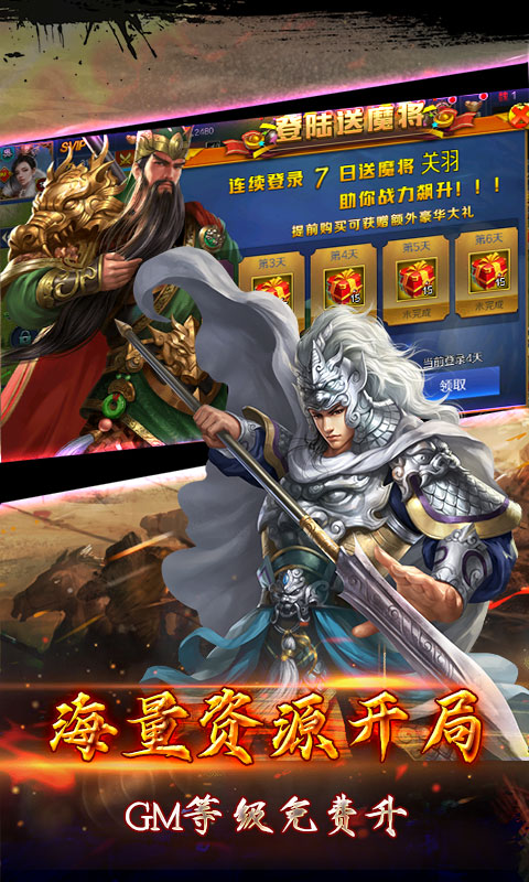 3、七日登陆送魔将关羽,再送豪关羽必备养成材料