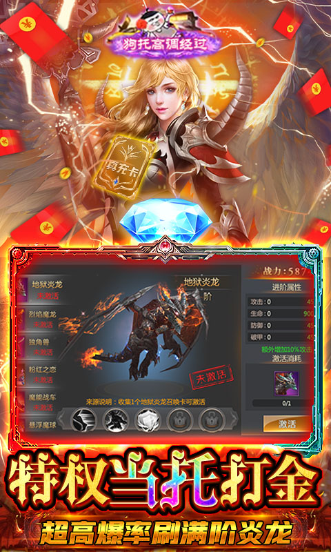 3、无条件领取满阶坐骑!开局一只莽荒神兽!装备全靠打!