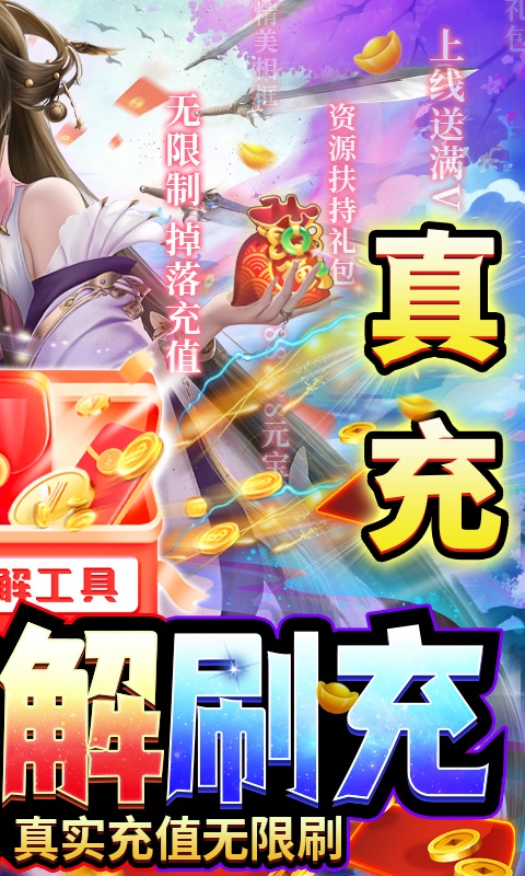 2、创角即送满v、元宝*88888、绑元88888、888w铜钱、坐骑化形、相框/气泡框,资源扶持礼包