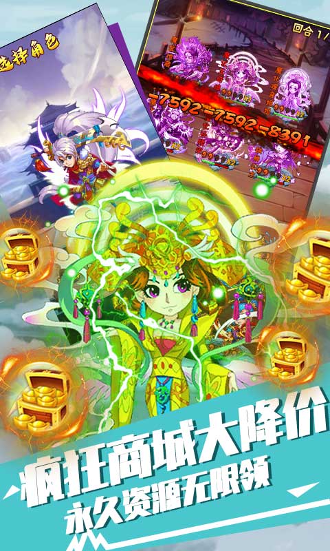 后缀说明:上线送超v,千万元宝,千万金币,全图鉴卡,顶级阵容任意搭