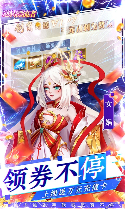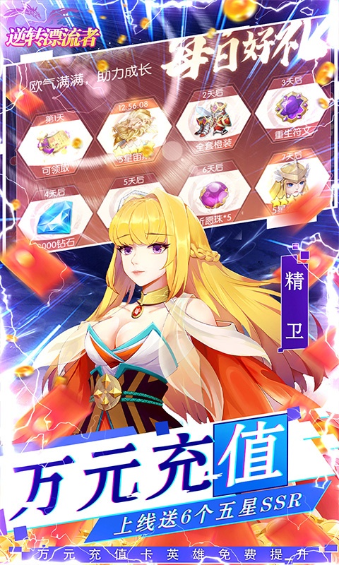 1、上线即送vip7特权,6个超强5星英雄,100连抽,5000钻石等豪华福利