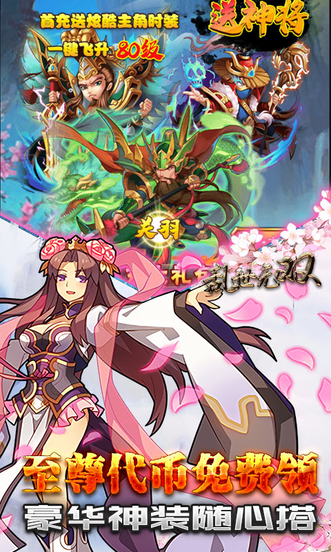 主角因偶然穿越三国时期,带领众多伙伴对抗黑暗势力,组建属于自己的队伍成员,崭露头角,披荆斩棘,上线福利更是多多,上线即得全图鉴卡,无门槛得神卡,副本掉落真充,每日签到至尊代币,免费拿资源和神将商城等级,带你角逐三国之巅,随意搭配巅峰阵容!