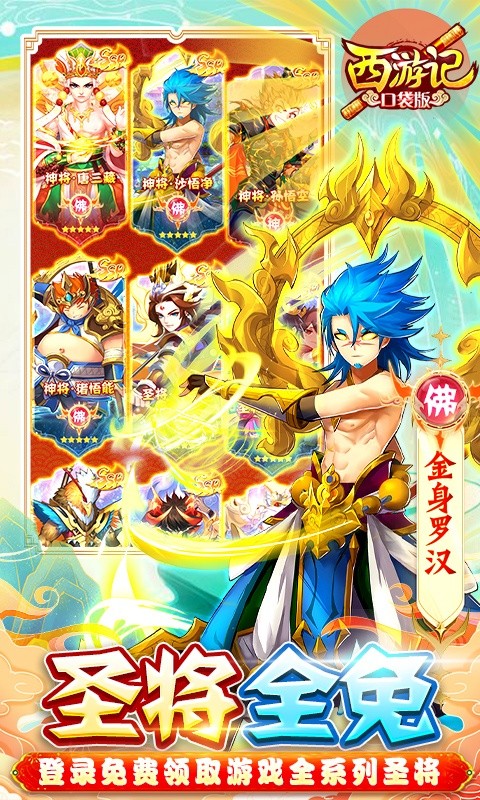 2、登录即可领取游戏全系列圣将、神将4师徒:唐三藏、孙悟空、猪悟能、沙悟净