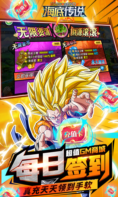 1、上线既送gm1, 赠送100万钻石,1000万金币!千元真充卡!
