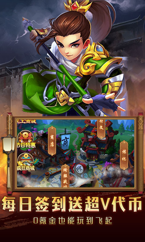 1、上线送至尊v、千万元宝、千万金币,登录就送千元真充卡与新手代币礼包