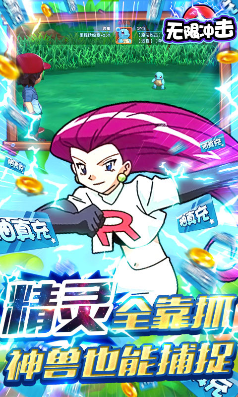 《无限冲击(送20000真充)》是一款复刻经典玩法的全新口袋手游,金币可直接将资源收益拉满,最强创新玩法,全队共享等级、装备,再也不用担心浪费资源反复培养了!精灵全靠野外抓取,想养哪个就养哪个,不需要靠脸抽卡!更有多倍速度自动闯关、自动抓宠,不肝不氪也能轻松回味经典!