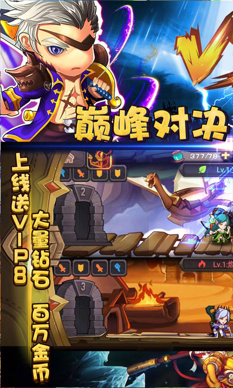 1.【注册大礼】新玩家上线直升vip8,即刻赠送28888钻石,188万金币!