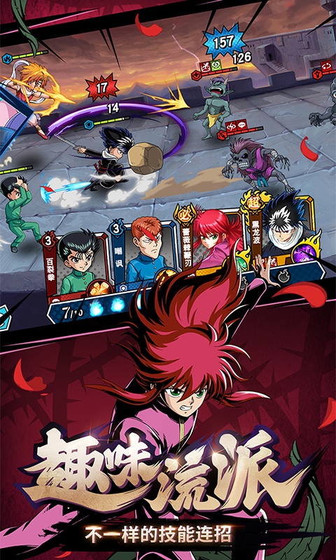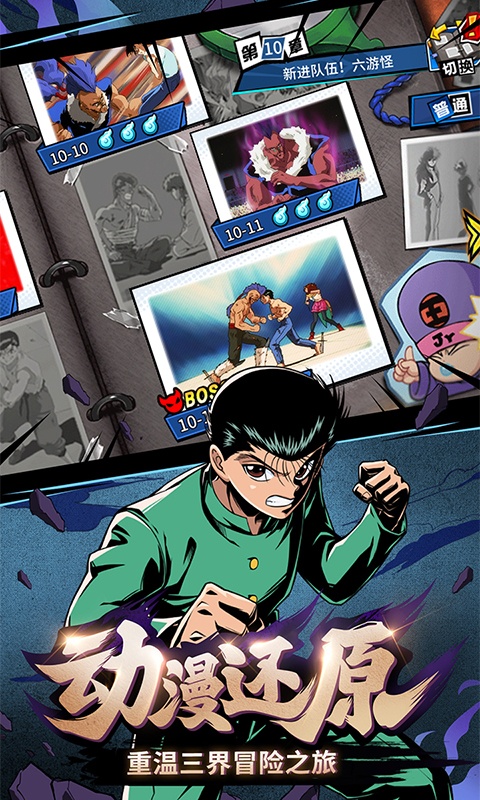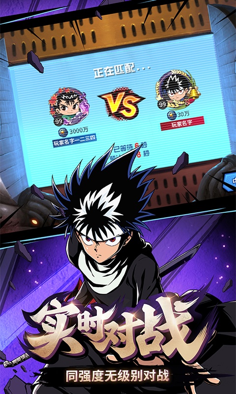 1、游戏忠实传承动漫热血基调,更有原班声优及经典bgm,让你亲历原作经典桥段与感人瞬间。全作人气角色悉数登场,打造属于你的暗黑武术会最强小队,结交同伴,并肩作战!