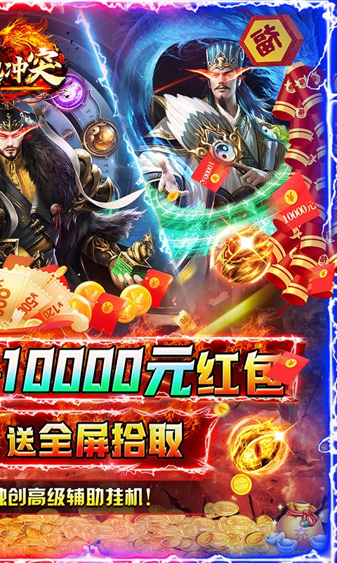 《战地冲突(魂环破解打金)》真独家三国传奇,年度爽服,三国鼎立,称霸沙城,开局领5000元红包、破解号特权、打金魂环、送全屏拾取,再送满级vip,全新破解辅助挂机系统,助力狂虐boss,打金魂环暴爽打金,所有地图爆大量充值,小怪掉充散人天堂,无限打金!全角色攻速大提升,开局开砍,新春暴爽打金!全新优化所有boss爆率,全程掉落实物,可回收大量货币,全面提升打金爽感!