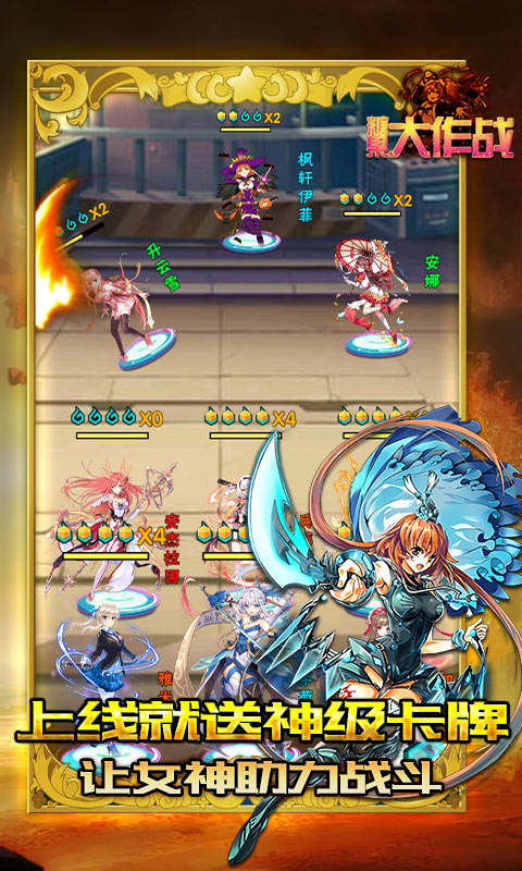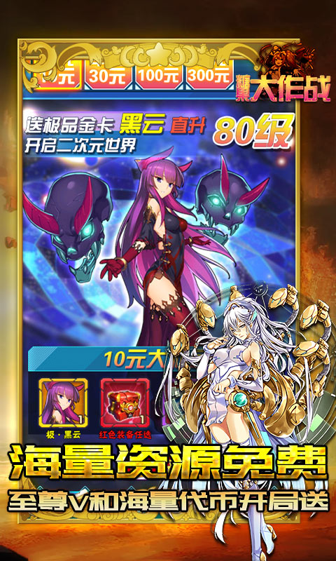 玩家穿越二次元的世界,开始走上一条收集各路萌妹,组建阵容, 并肩战斗,阻止黑恶势力,主角光环环绕,精彩战斗尽收眼底,各种萌妹任你搭配,全新无损换将,首日登录送千元真充,新手代币礼包,登录即得千万钻石千万金币,至尊v免费拿,每日签到送代币,0氪阵容随意搭。