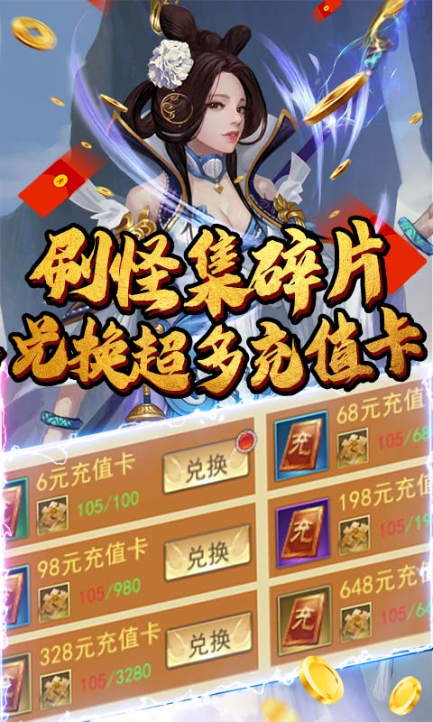 后缀说明:创角即送万元充值卡礼包,在线赠送首充、周卡特权,全套金装免费激活