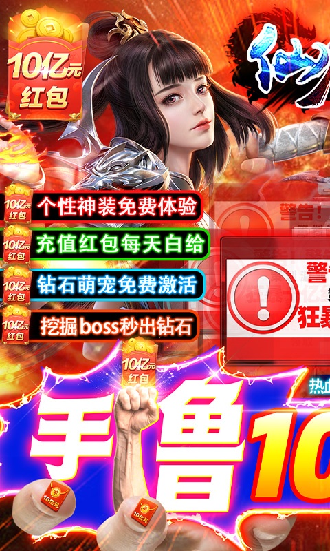 全新传奇手游力作,原汁原味的传奇玩法,专享福利,上线送588万元宝、28888钻石、绝版珍稀称号。更有十亿红包独家福利等你来爆!助你牛转乾坤;在线签到领红包,只是亿点点福利!游戏内超多boss,打完后还可以挖掘boss出钻石,装备爆率超高,万物皆可爆,回收还可获得钻石。手机版将传承端游的经典设置,除了打怪掉宝外,自由pk、行会争霸以及沙巴克攻城等传奇经典元素都将在手游中呈现!再加上精美又极具传奇风格的画面,力求为玩家打造指尖上真实震撼的战斗体验!