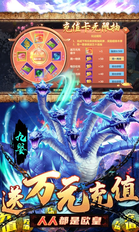 1、登录送vip11、元宝*18888、绑元*18888、铜钱*8888888、抽奖券