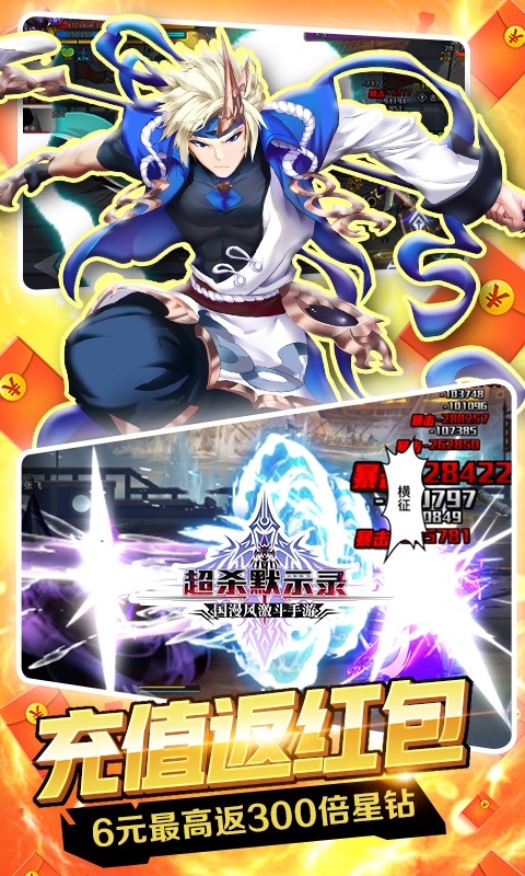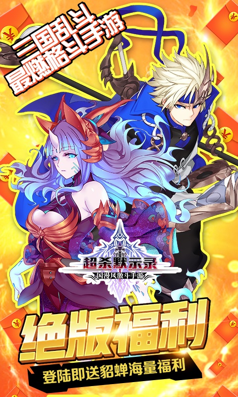 上线送满v,68888星钻,888888铜币,貂蝉*1,奇异衣料*1(貂蝉)次日送董卓、黄忠等超强武将,超爽闯关不是梦!《超杀默示录》由死神觉醒原班开发团队耗时多年倾力研发,打造全新经典横版动作手游。 国漫画师绘制异次元三国世界,专业级开发引擎带来超高清原生画质,高帧数体验颠覆级感官盛宴。由百位天命英雄带释放上百种华丽技能,特创线性滑屏战斗操作,享受无锁定战斗的极致打击感。
