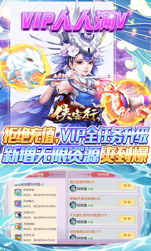 《侠客行(无限免费充)》是一款3dmmo新派武侠国风手游,美术画风无比精细,四大职业各具特色,游戏根据金庸先生的小说《侠客行》为蓝本改编,玩家以第三方视角参与小说剧情,见证跌宕起伏的江湖情仇。游戏高度忠实于原著,精细还原武学修为提升,奇经八脉拓展和经脉运功,上手难度低外加自动化操作,各位侠客利用碎片化时间即可轻松游戏,游戏每日可领免费充值等同真充,激活充值活动!游戏新增无限资源,海量资源每日领取直达上限!