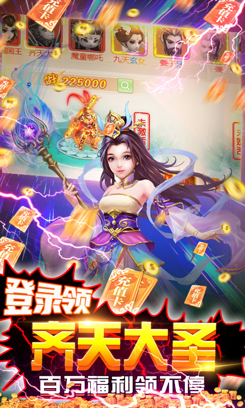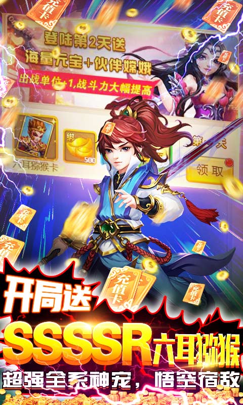 3.登陆豪礼不断,首日免费领取ssssr神宠六耳猕猴、七日更有红阶主力伙伴齐天大圣!助您在英雄辈出的西游世界里称王称霸!