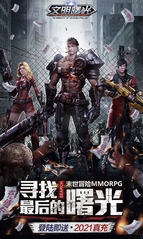 《文明曙光-送2021真充》一款末世冒险,强者生存!次世代废土mmorpg手游强势来袭!上线1钻石购买2021真充卡!活跃无限抽充值!boss无限爆充值!礼包码领取极品越野!世界为何会变成这样?人类为何迎来末日?恶意引爆的核弹,不计后果的战争,摧毁了文明与秩序,残存的人类躲入地下避难所,苟延残喘。百年之后,世界已是面目全非,暴虐的永夜军变异人横行霸道,幸存的人类组成方舟联合竭力对抗。神秘的勇士离开地下避难所,为寻找拯救末世的希望,踏上探索新世界的征程!