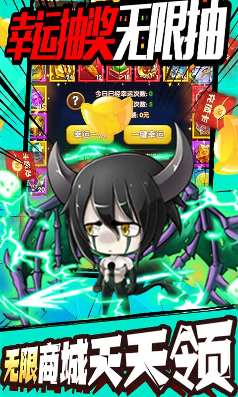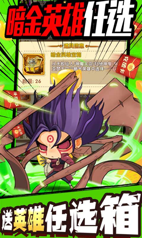 游戏开局还送超豪华福利,超良心登录活动,最高品质暗金英雄,暗金装备、大额充值卡送送送!开局任选极品红色英雄,连续登录还有幻彩英雄、最强暗金英雄供你选择,强大阵容队伍随心组合!