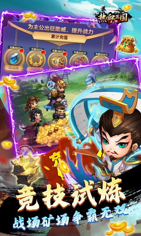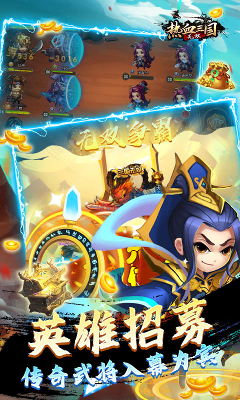 《热血三国无双(送5w真充)》是一款q萌好玩的三国题材卡牌回合手游。画面精美,人物可爱,打造炫酷大招及个性造型,战斗场景震撼视觉,给你一个乱世纷争何时休,征战无双几度秋的世界。还可以有三千世界鸦杀尽,与君共寝到天明的铁骨柔情。放置战斗,指尖冒险,竞技pk、英雄试炼、战场挑战、皇陵探险、争霸之战,多样的玩法,超多的英雄组合自由搭配。快带领你的英雄小队,开启属于你的传奇英雄史诗!我真的好玩的,你忍一下!