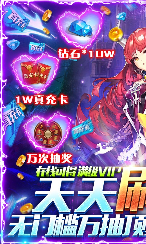 1、上线即送vip16、金币1288万,输入礼包码【vip888888888】领取橙色英雄翡翠龙女-艾妮特