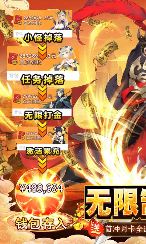 3.上线送v13,充值比例1:10000,首充多倍充值。