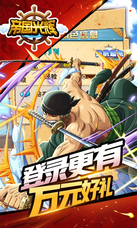 《帝国光辉(送gm无损换将)》全球超人气热血漫画海贼珠题材卡牌游戏,独创的新颖剧情,高人气人物大集结,与你一起并肩战斗,精美画风,爆燃战斗,让你体验全新超爽、超燃的海贼世界。