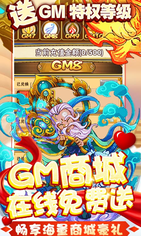 3、在线奖励送gm特权,不氪金也可获得gm等级,尽享特权商城!!