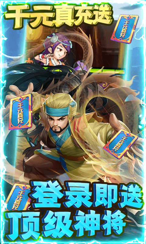 2、登陆领充值卡,充值比例1:500,首充双倍,送顶级材料、道具。