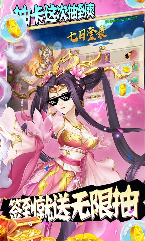 2、次日登录任选超强ssr,七日登录送ssr (最高品级)、锦鲤秘宝(必开充值卡)
