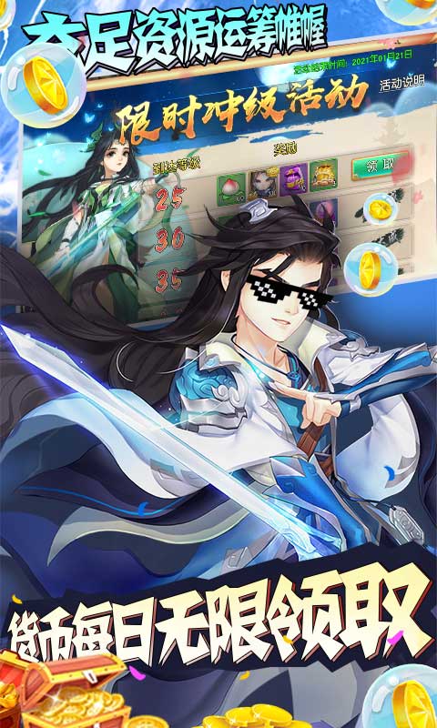 1、登录送vip20、元宝*68888、铜钱*888万