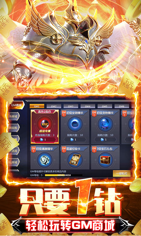 后缀说明:在线送无限制万元真充卡,可以激活累充活动。gm商城1钻石购买,超强大无限资源特权,可无限制领取,日收亿钻不是梦