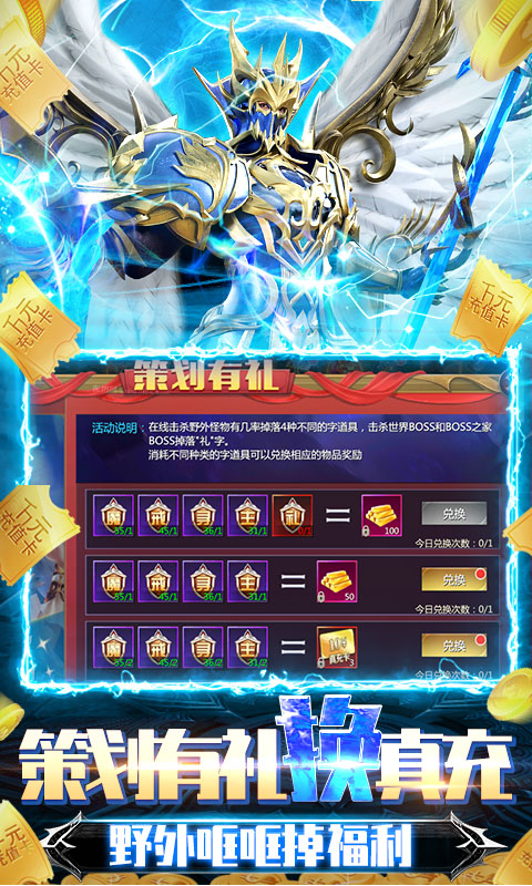 2、在线可领10000元真充卡,真充卡可激活新服累充活动