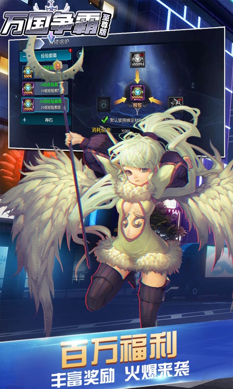 万国争霸(至尊特权)是一款3d动作手游,玩家可扮演剑士、法师、炮手等职业,与人类一起对抗魔族。游戏内拥有天使之翼、宠物、世界之树等战斗培养元素,还引入竞技场、世界boss、跨服战斗等pvp玩法。囊括了mmo必备的装备养成、人物养成、boss挑战、在线交易、公会pk等海量内容。