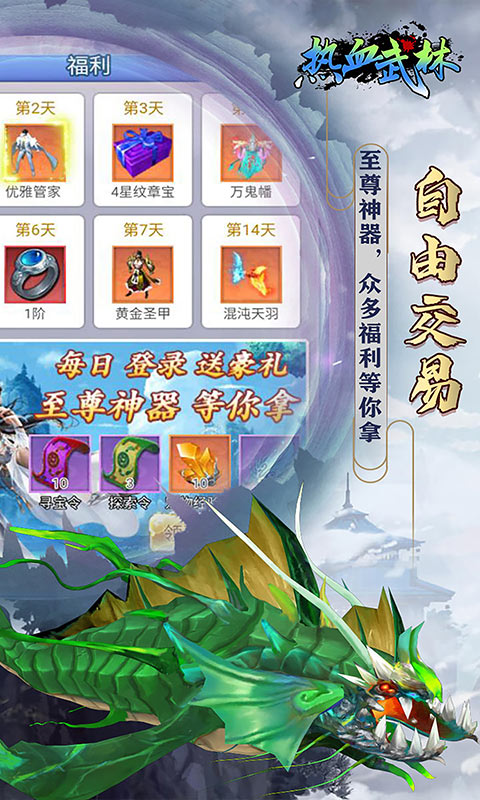 《热血武林(送gm千充)》以上古神话为题材、玩家自由操控体验的即时战斗仙侠角色扮演游戏,游戏内拥有丰厚的养成系统,绚丽多彩的角色外观,特色的仙侣培养,快速提升战力。让你在三界仙魔激斗的世界内,酣畅战斗,激情无限。仙界争端,谁主沉浮,最强仙斗,我主乾坤。