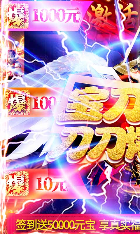 3、签到每天5万元宝,极致尊享超强秒杀体验!