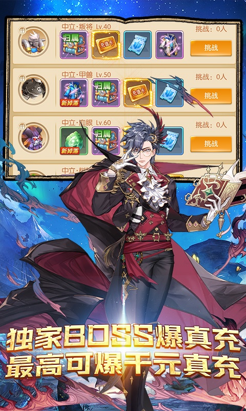 无限送真充说明:创角即送888元充值卡,游戏内爬塔赠送万元真实充值,挖宝挖矿无限送真充,boss无限爆真充