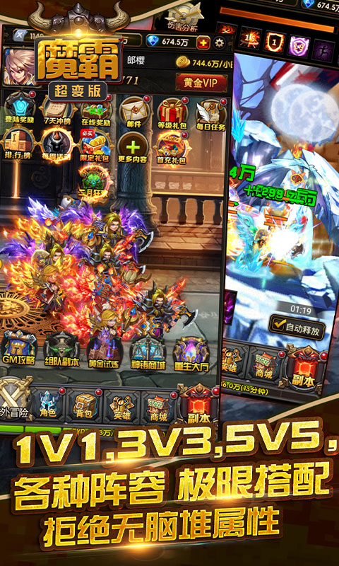 魔霸(商城特权)是一款经典的巨制mmoarpg手游,游戏中玩家可以体验不一样的热血,超多精彩的副本等你来挑战,还有畅快挂机模式,轻松挂机,一键升级。强力武器解锁对应英灵,百种武器,百种英灵,百变武器百变技能,多种属性随意搭配,炫酷的操作打击,华丽的时装造型,独特的人物头衔,实时pk,快速升级,轻松副本。