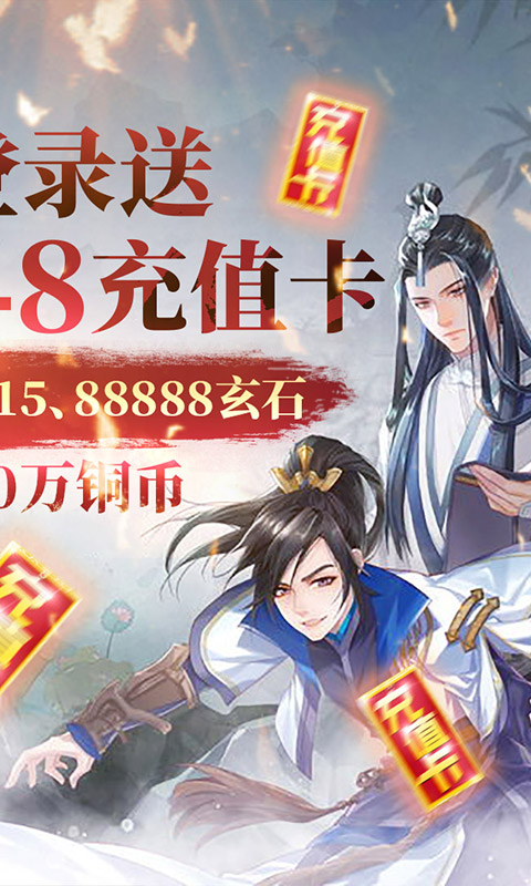 2.登录送648充值卡、vip15、88888玄石、100万铜币