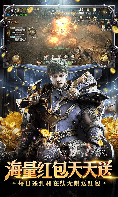 《主宰之王(领海量红包)》是一款以西方魔幻为题材背景的3d角色扮演类移动手机游戏!上线就送vip8、海量金币和钻石,还有宝藏500抽!天天送红包,累计登录免费送全部佣兵、全部极品特戒和全部精灵,首充1仅需1元,不仅可以获得炫酷时装和绝版神兵,还送海量经验丹助你等级飙升。上线刷boss爆顶级装备,下线还有挂机奖励,奖励找回,不肝不氪,轻松成为大佬!耗时5年,全新unity 3d引擎打造,全景视角自由操作,在这里你不仅能感受电影级画面,也能在游戏内找到专属于你的世界,快来踏上这段波浪壮阔的旅途吧!