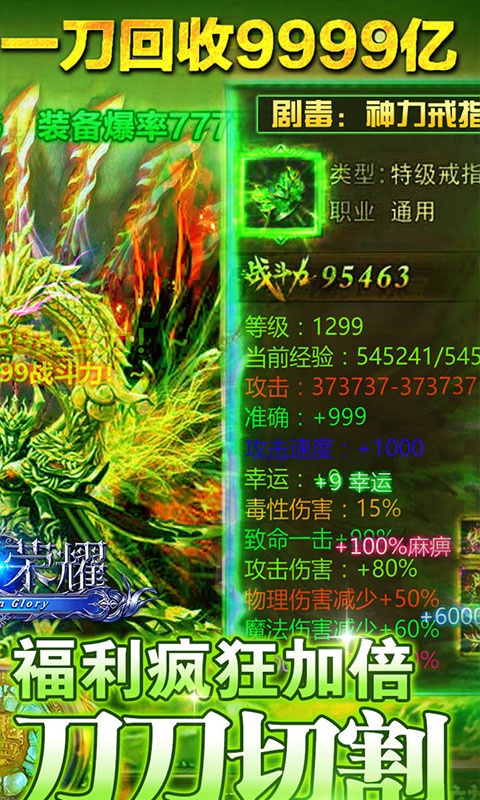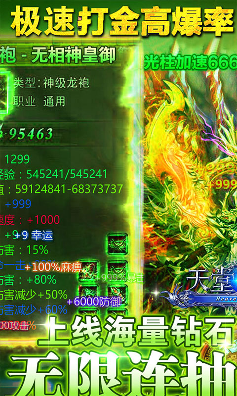 天堂荣耀(海量特权)以自由交易、刷boss、跨服pk、皇城争霸等玩法征服着荣耀世界,进入九洲城创建属于自己的国度!以北欧魔幻般的场景为基调,给你一段史诗般的魔幻故事体验!自由交易、刷boss、跨服pk、皇城争霸等玩法极具特色,改变你对传统游戏的看法,激起你内心狂热之心!快来吧,在天堂荣耀(海量特权),游戏中创造你的神话!