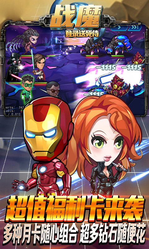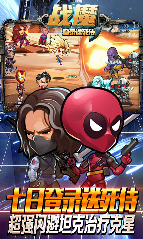 战魔(登陆送死侍)是一款卡牌类的手游,游戏采用了经典的漫威英雄角色,众多熟悉的人物悉数登场,不断收集养成,提升战力,合理搭配技能效果阵容,玩出你的专属套路,游戏上线即送超多钻石金币,免费vip及好礼送不停,顶级英雄和材料等你领取,赶快下载吧!