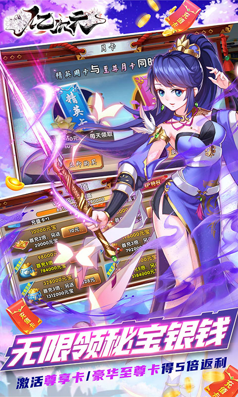 2,充值卡、元宝随便花。每日签到,主线任务,活跃奖励皆可获得