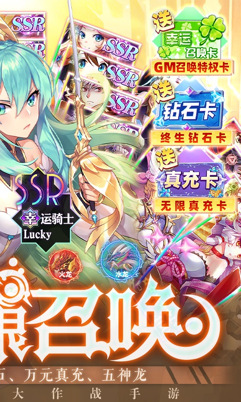 《幸运草骑士(gm无限召唤)》是一款二次元放置卡牌手游。游戏以一个架空的世界观的幻想世界,在这片神奇的大陆中,拥有来自不同时空的英雄,而玩家作为幸运草骑士率领着各族英雄不断磨练自己,同时守护强大力量的幸运草,齐心协力对抗肆虐在大陆上的邪恶力量。