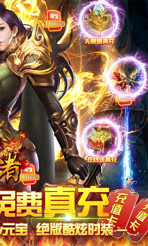 2、每日登录送无限真充卡,海量充值无限送,元宝用到手抽筋!